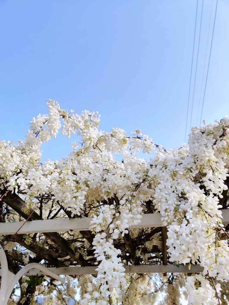 Ja se villinä kukkiva wisteria sai hetkeksi miettimään muuttoa pois täältä Suomen pohjolasta, kunnes taas muistin kuinka kuuma niissä paikoissa on, missä noita kukkia kasvaa.